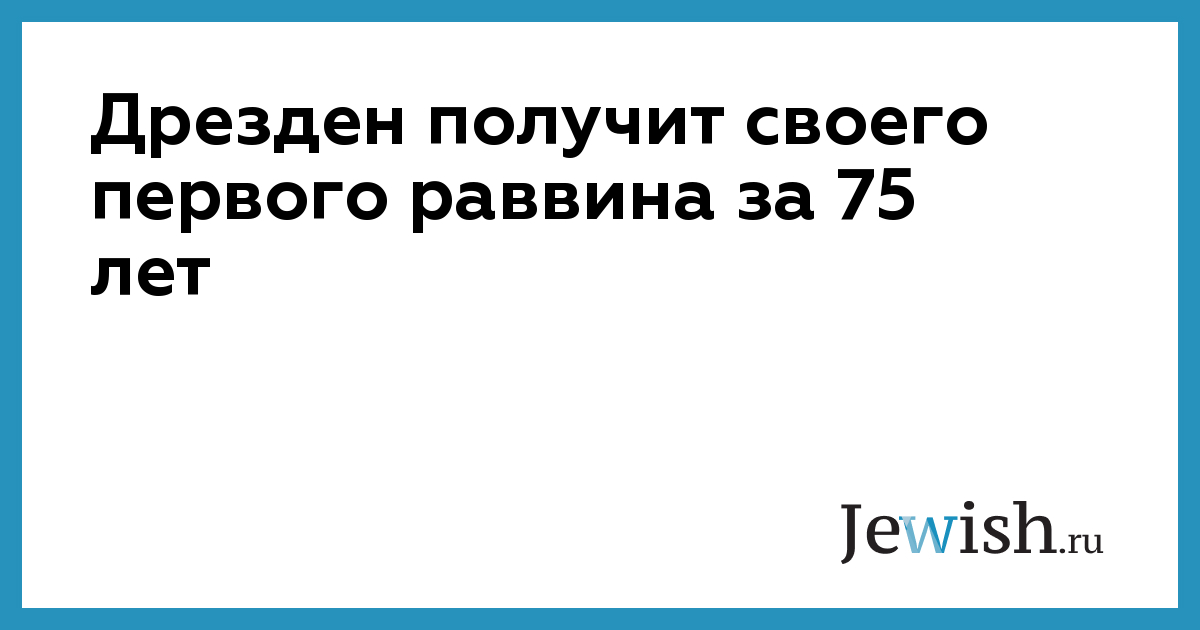 Еврейская община Дрездена получит своего первого постоянного раввина в городе с 1938 года. Ранее в Дрездене служил раввин Соломон Альмекиас-Зигель, который разрывался между тремя общинами до выхода на пенсию в 2011 году.