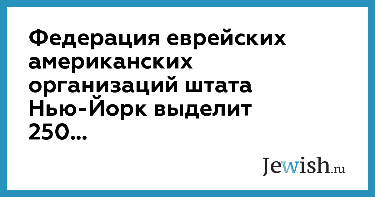 Федерация еврейских американских организаций штата Нью-Йорк выделит 250...