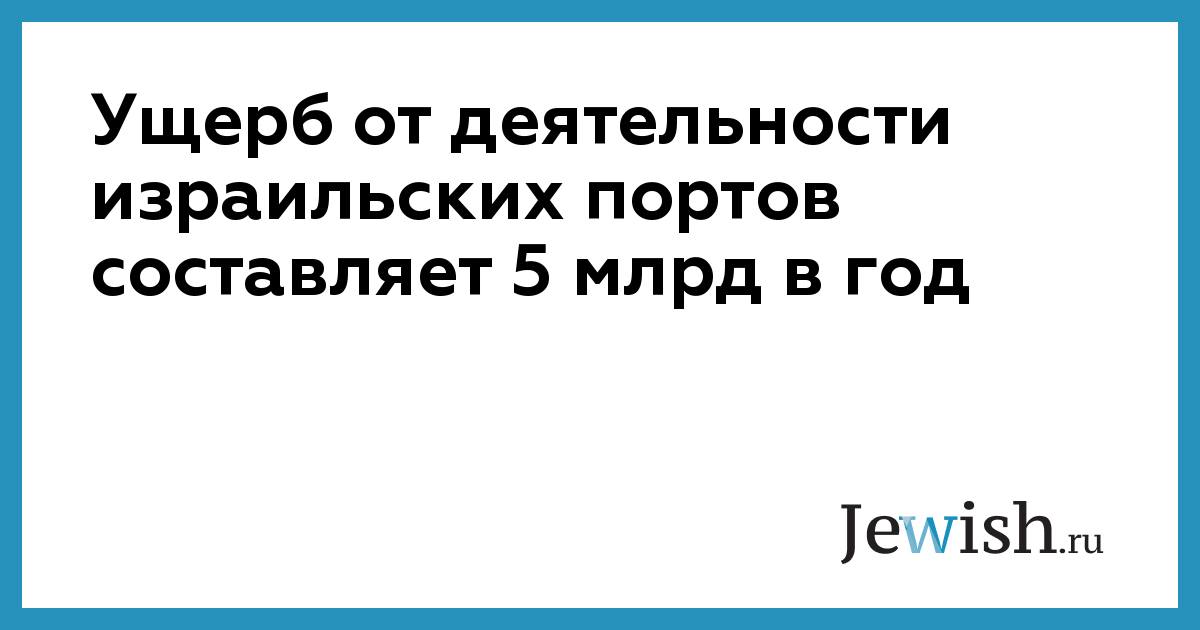 Результаты обширного исследования, проведенного антимонопольным ведомством, вот уже три года не публикуются, пишет Ави Бар-Эли в TheMarker. В отчете говорится, что ущерб, который наносится израильскому хозяйству от непроизводительности израильских портов, составляет примерно 5 млрд шекелей ежегодно. Эта цифра включает сумму прямого ущерба, а также косвенные убытки, которые несут государственные и частные компании.