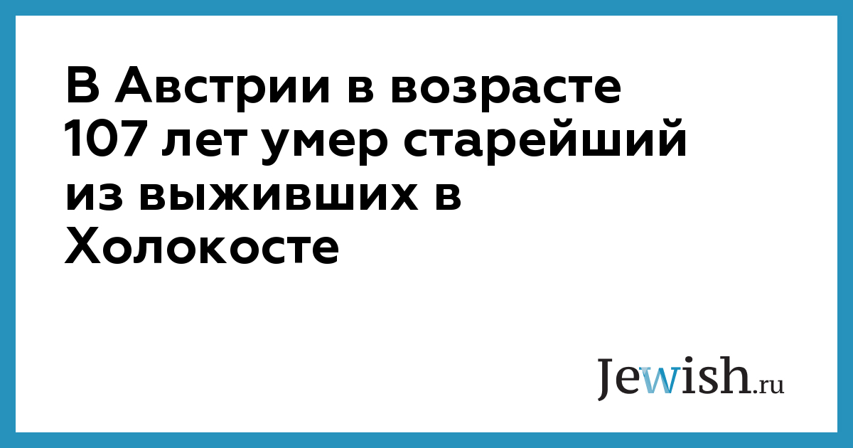Как стало известно 2 мая, в Австрии скончался Леопольд Энглайтнер, считавшийся самым старым мужчиной из числа выживших в Холокосте. Он был узником нацистских концлагерей Бухенвальд, Нидерхаген и Равенсбрюк. Леопольд Энглайтнер умер 21 апреля, ему было 107 лет.