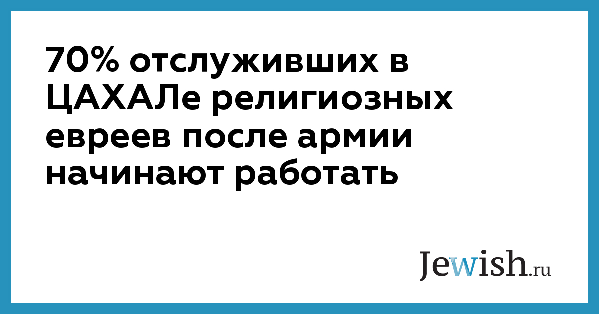 70% отслуживших в ЦАХАЛе религиозных евреев после армии начинают работать