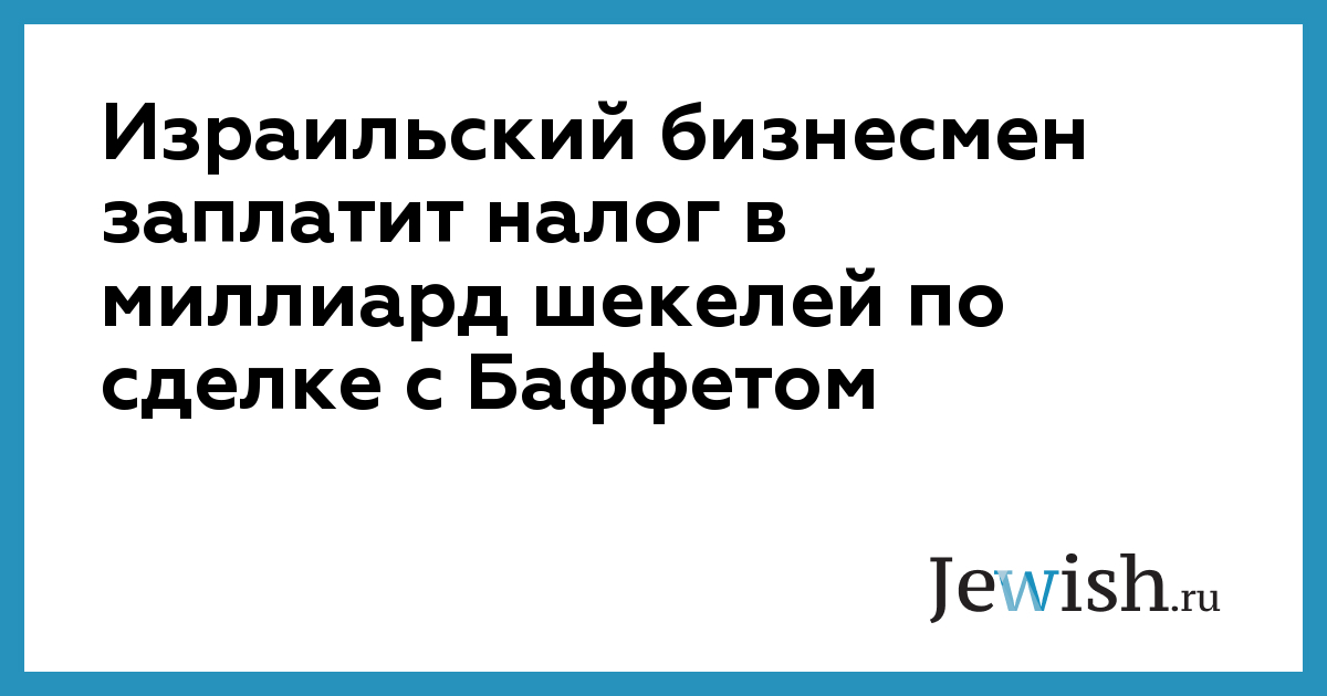 Израильский бизнесмен заплатит налог в миллиард шекелей по сделке с Баффетом