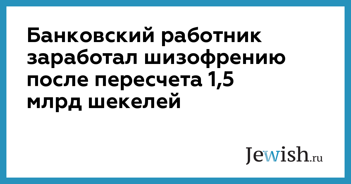 Банковский работник заработал шизофрению после пересчета 1,5 млрд шекелей