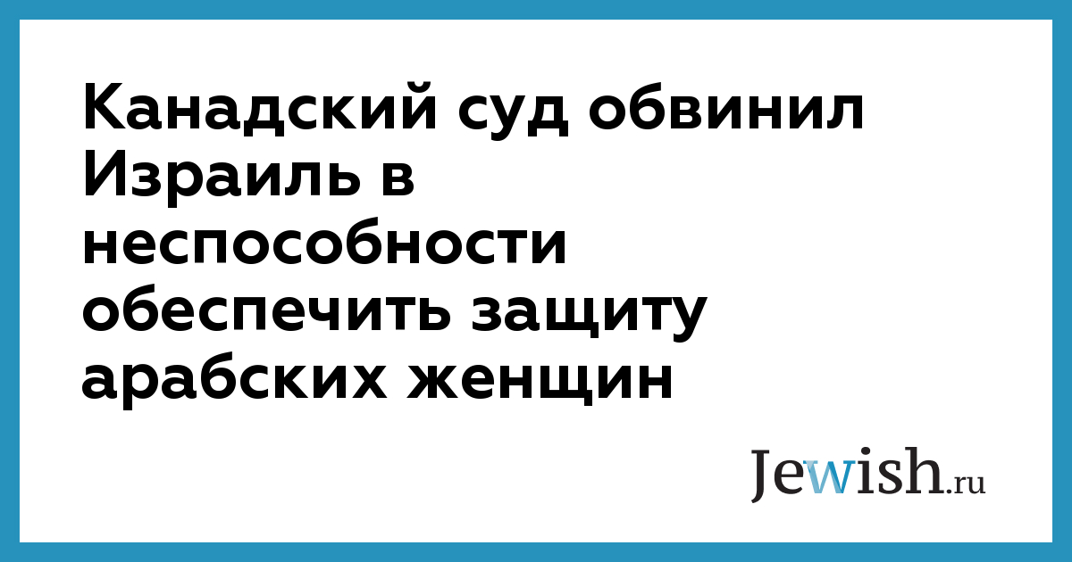 Суд провинции канадской провинции Онтарио постановил, что Государство Израиль и его правоохранительные органы не способны предоставить защиту арабской женщине, заподозренной родственниками в "нанесении ущерба чести семьи".