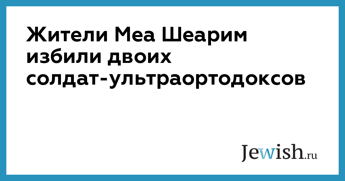 Десятки жителей ультраортодоксального иерусалимского района Меа Шеарим напали на двоих членов своей общины, которые были одеты в форму солдат ЦАХАЛа. Как сообщила полиция, в результате обоим потребовалась госпитализация.
