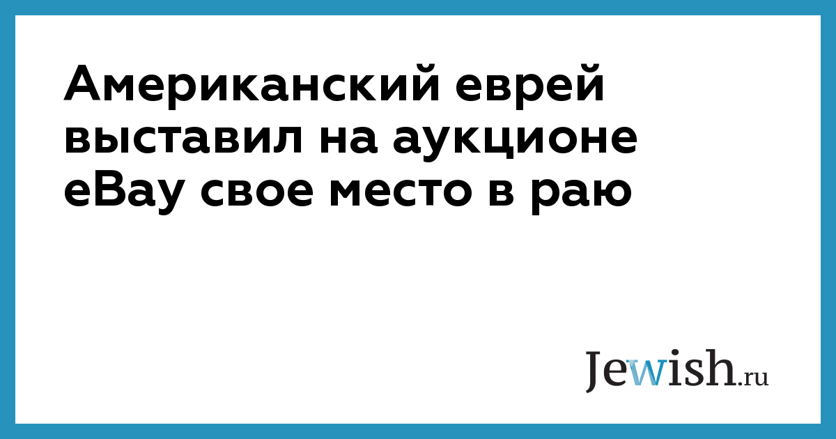30-летний американец Ари Мандель, родившийся и выросший в хасидской семье в пригороде Нью-Йорка, выставил на интернет-аукционе eBay "свое место в раю". В течение нескольких часов цена его лота взлетела с 99 центов до 100 тысяч долларов.