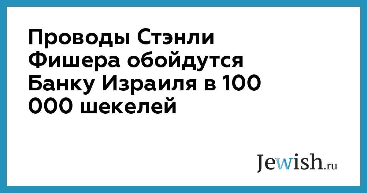 Банк Израиля намерен проститься со Стэнли Фишером, покидающим свой пост 30 июня, так, чтобы это запомнилось надолго. 18 июня в Иерусалиме состоится вечеринка, на которую приглашены ведущие экономисты из Европы и США. Сами организаторы намечающееся мероприятие называют "конгрессом". По предварительным оценкам, его стоимость составит не менее 100 тысяч шекелей.