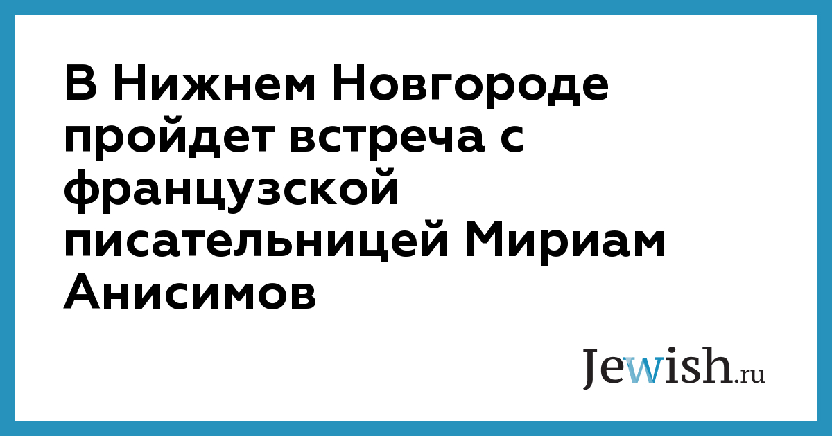 Литературная встреча с французской писательницей Мириам Анисимов пройдет в Нижнем Новгороде 6 июня. Об этом рассказала один из организаторов встречи. Встреча состоится в Библиотеке им. В.И.Ленина в 16.00. Вход свободный.