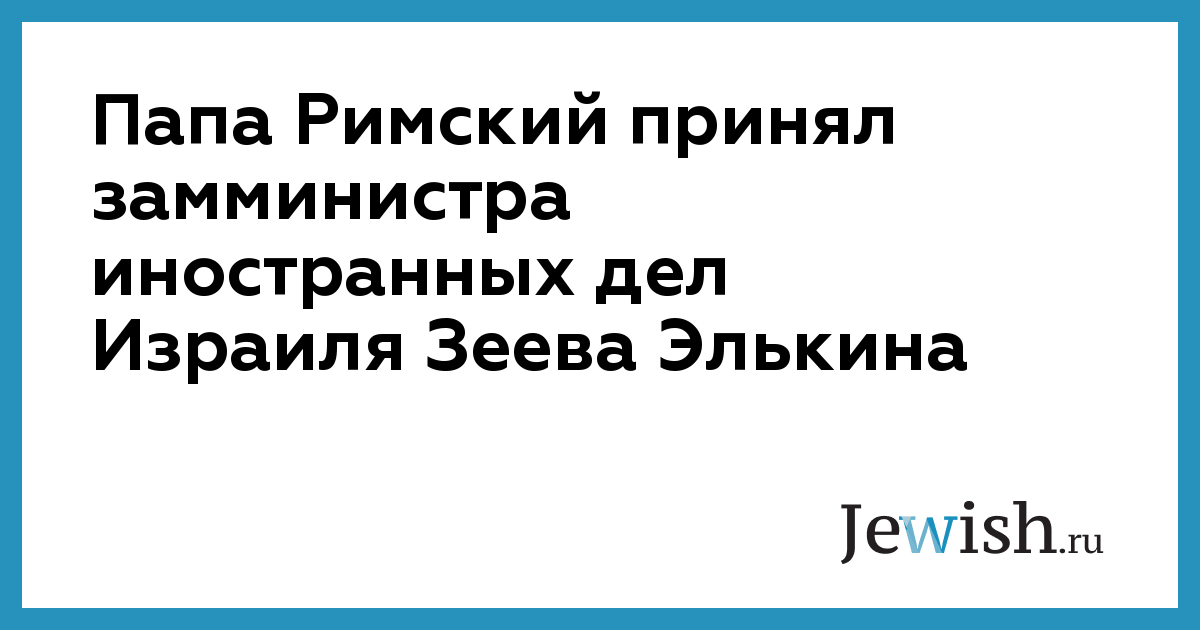 Замминистра иностранных дел Израиля Зеев Элькин 5 июня в Ватикане удостоился аудиенции у Папы Римского Франциска I. Пресс-служба замминистра отмечает, что в знак особого внимания понтифик принял израильскую делегацию в личных покоях.