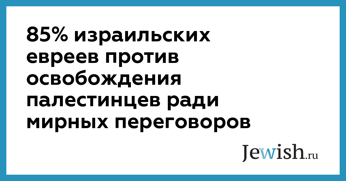 Требование руководства Палестинской автономии, чтобы Израиль выпустил из заключения арабских террористов в качестве предварительного условия для мирных переговоров, является неприемлемым для 85 процентов израильских евреев. Об этом свидетельствуют результаты опроса, проведенного Институтом Смита, занимающимся исследованием общественного мнения.