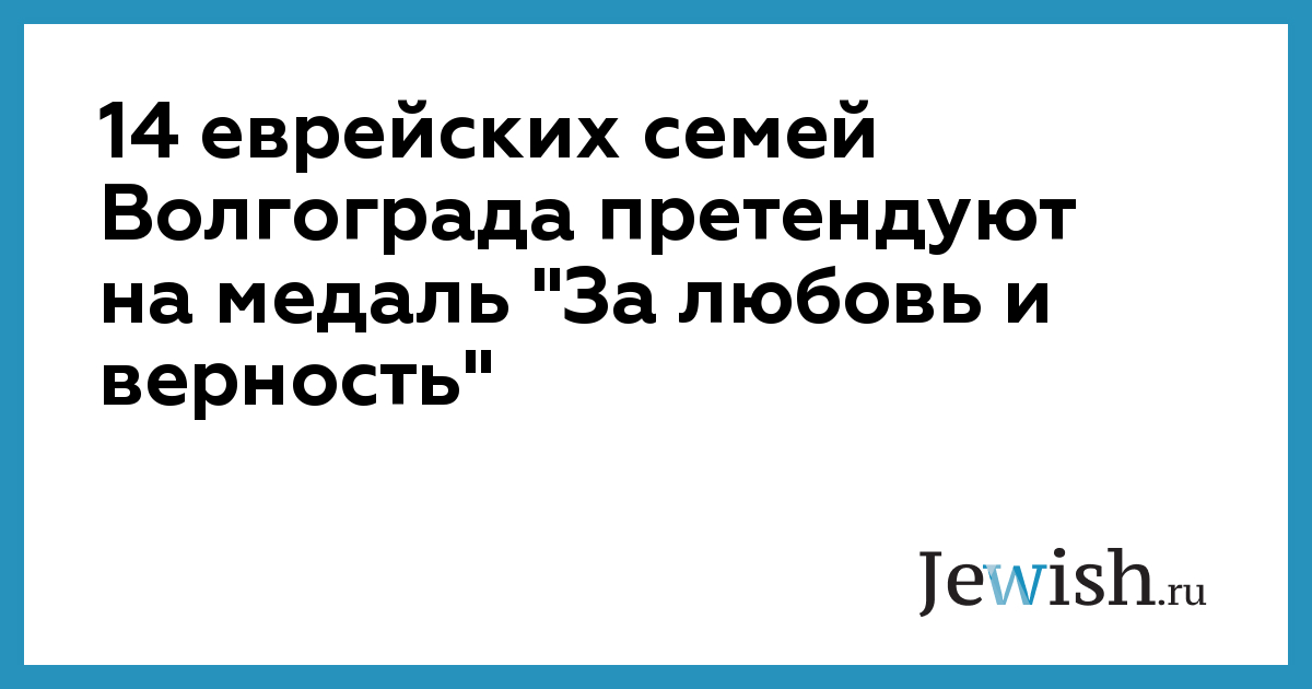 14 еврейских семей Волгограда претендуют на медаль "За любовь и верность", утвержденную Организационным комитетом по проведению "Дня семьи, любви и верности" в Российской Федерации в 2008 году.