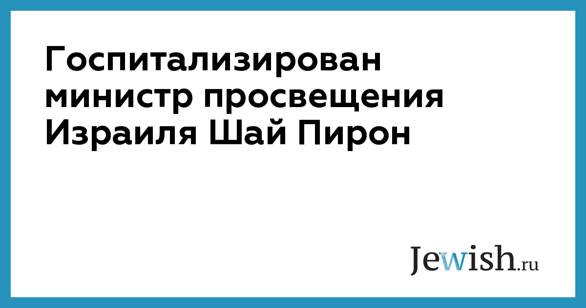 Госпитализирован министр просвещения Израиля Шай Пирон