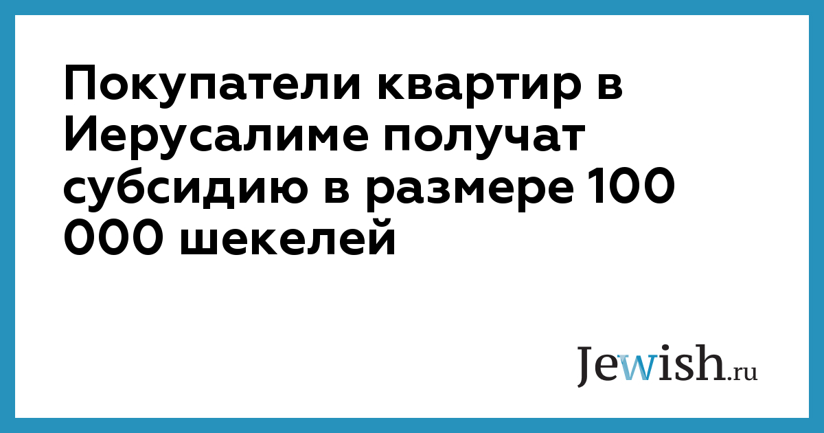 Покупатели квартир в Иерусалиме получат субсидию в размере 100 000 шекелей