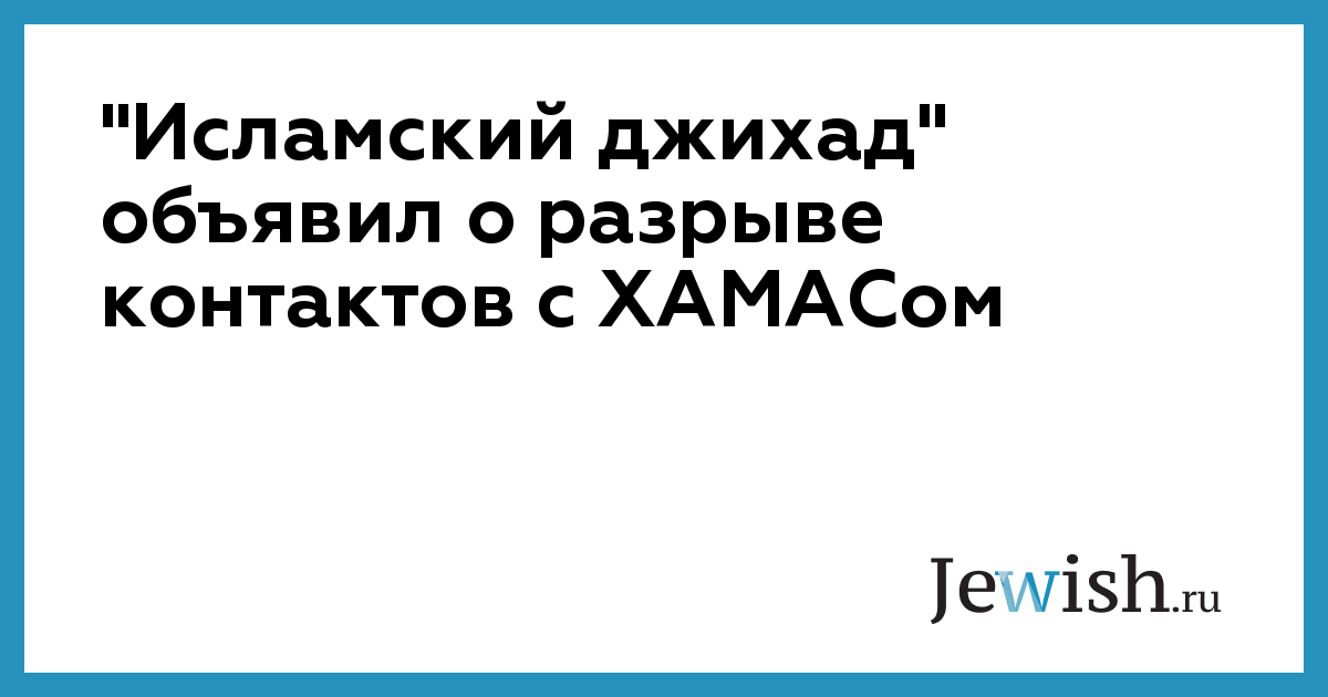 Террористическая группировка "Исламский джихад" сообщила, что разрывает связи с ХАМАСом, под контролем которого находится сектор Газа. В сообщении джихадистов подчеркивается, что мера носит временный характер. Причиной разрыва стала гибель боевика группировки Райеда Касима Джундайи.