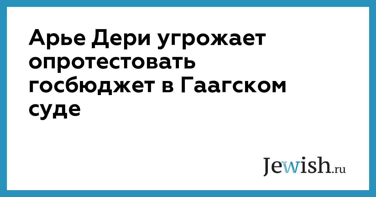 Во время обсуждения проекта бюджета на 2013-2014 годы лидер партии ШАС Арье Дери заявил, что он обратится в международный суд в Гааге, если по-другому не сможет защитить права своих избирателей. На выступление Арье Дери в Кнессете обратил внимание сайт "Кикар Шабат", посещаемый представителями ультраортодоксальной общины.