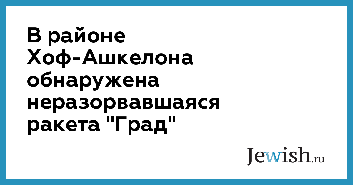 В районе Хоф-Ашкелона обнаружена неразорвавшаяся ракета "Град"