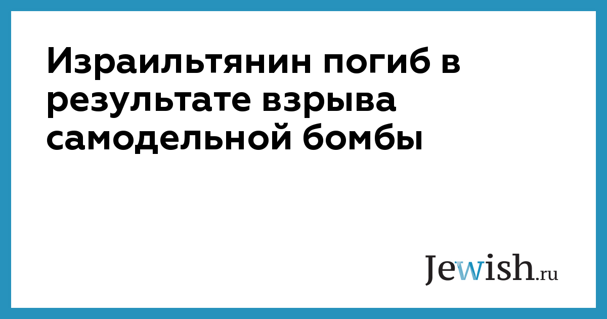 Израильтянин погиб в результате взрыва самодельной бомбы