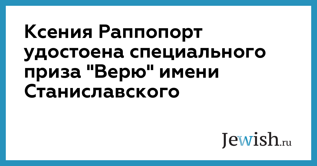 Ксения Раппопорт удостоена специального приза "Верю" имени Станиславского