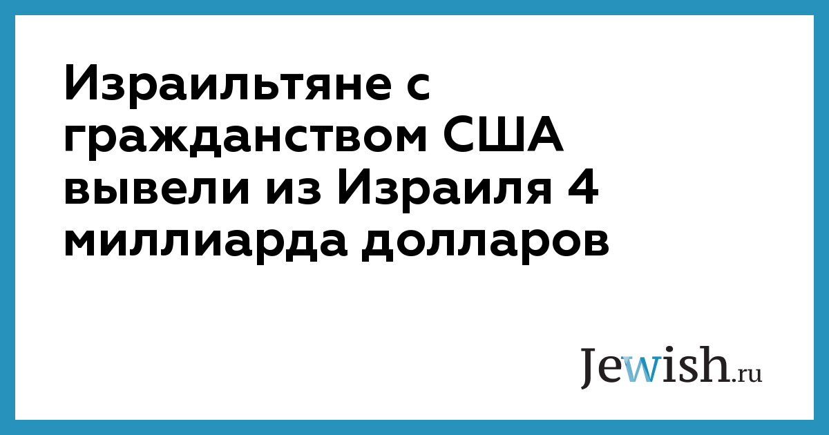 Израильтяне с гражданством США вывели из Израиля 4 миллиарда долларов