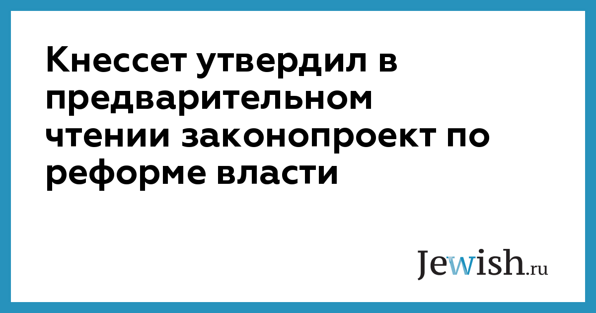 Кнессет утвердил в предварительном чтении законопроект по реформе власти