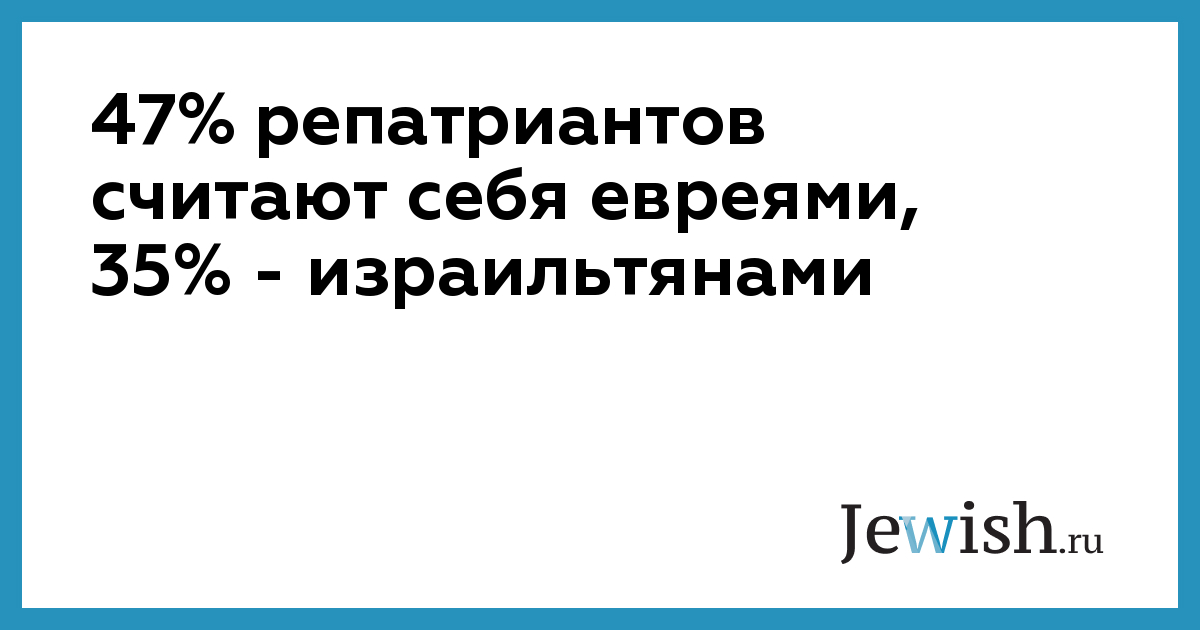 Исследование центрального статистического бюро, посвященное абсорбции репатриантов в период с 1990-го по 2007 год, показало, что только 47% из них считают себя евреями. 35% считают себя израильтянами и 19% определяют себя по стране исхода.