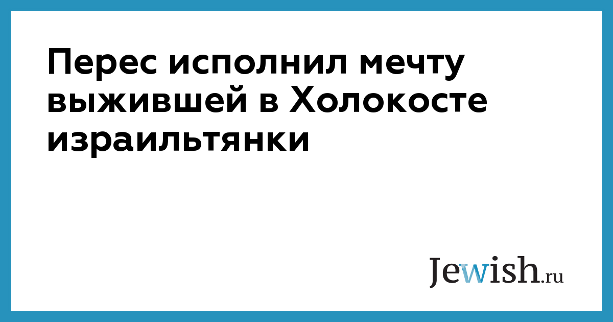 Перес исполнил мечту выжившей в Холокосте израильтянки