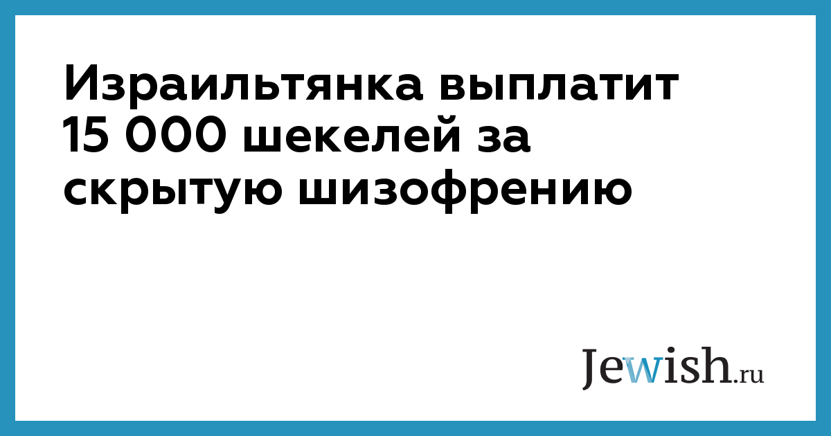 Израильтянка выплатит 15 000 шекелей за скрытую шизофрению