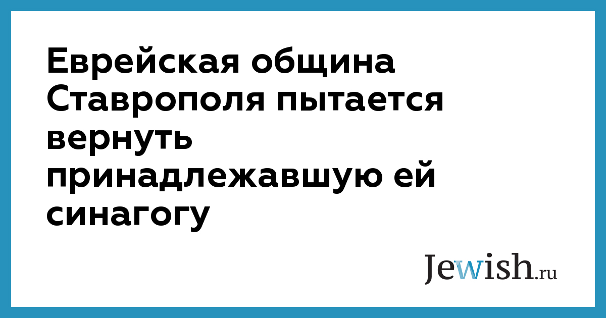 Еврейское сообщество Ставропольского края направило обращение руководству страны с просьбой отдать здание краевого ЗАГСа под синагогу, а также открыть в регионе Еврейский культурный центр, сообщает интернет-газета "Ставгород". По словам председателя правления "Еврейского дома дружбы" Константина Соломонова, здание ЗАГСа принадлежало еврейскому обществу еще до революции, и было построено на его деньги.