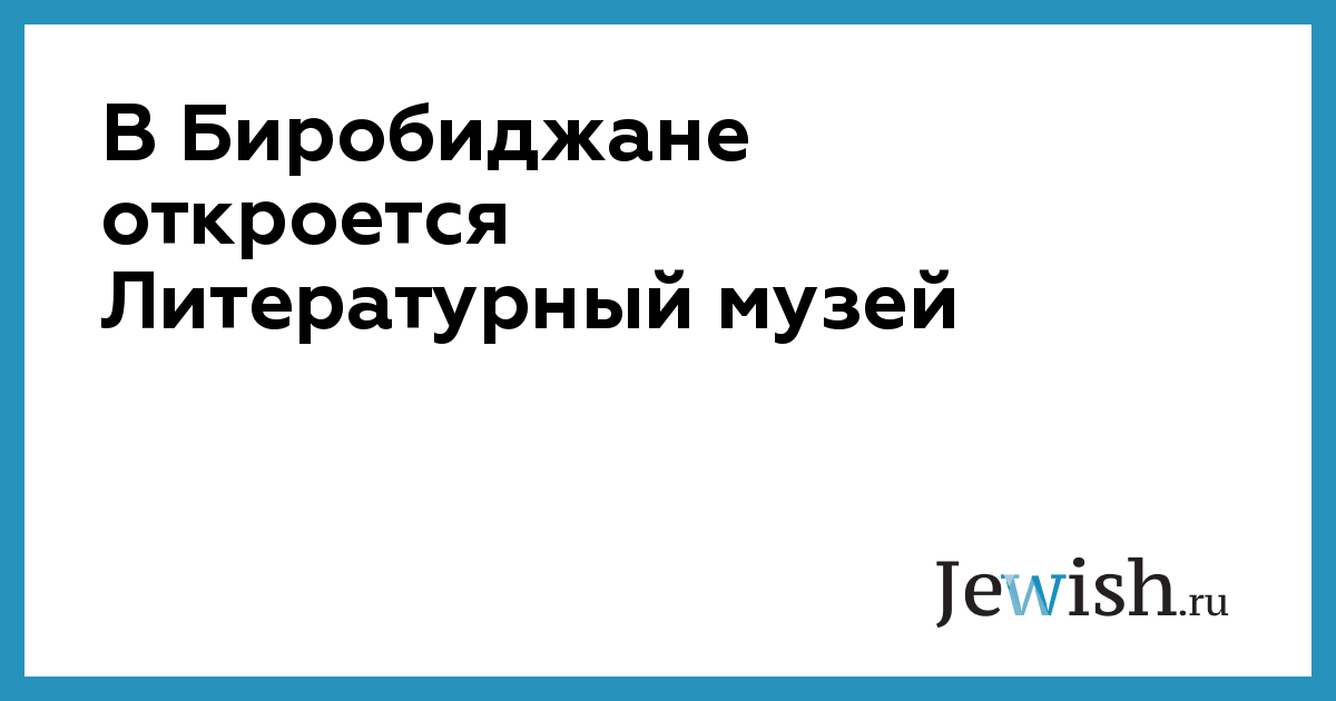 В Биробиджане откроется Литературный музей