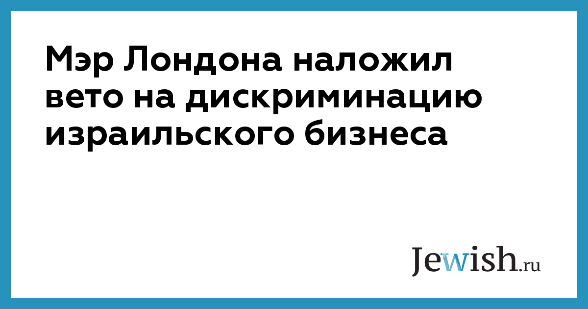 Мэр Лондона наложил вето на дискриминацию израильского бизнеса