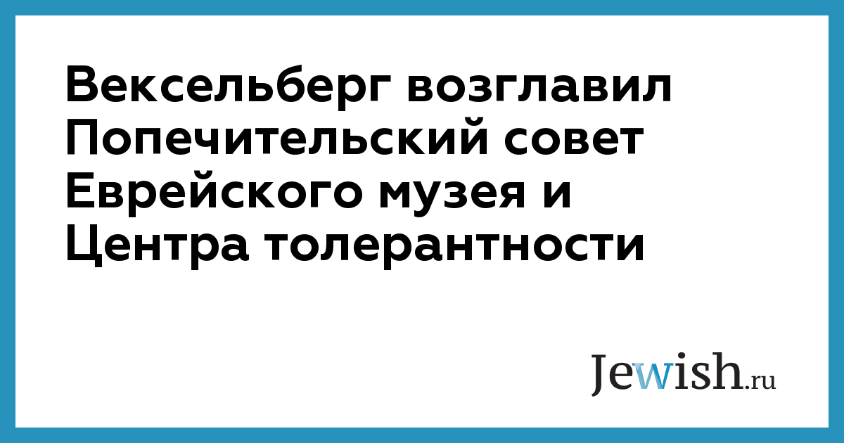 Создан Попечительский совет Еврейского музея и Центра толерантности в Москве. Возглавил совет известный предприниматель Виктор Вексельберг.