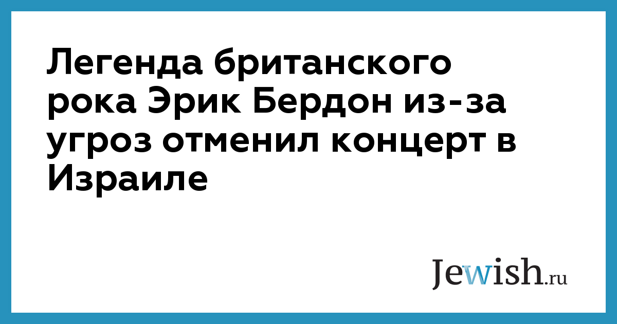 Легенда британского рока Эрик Бердон из-за угроз отменил концерт в Израиле