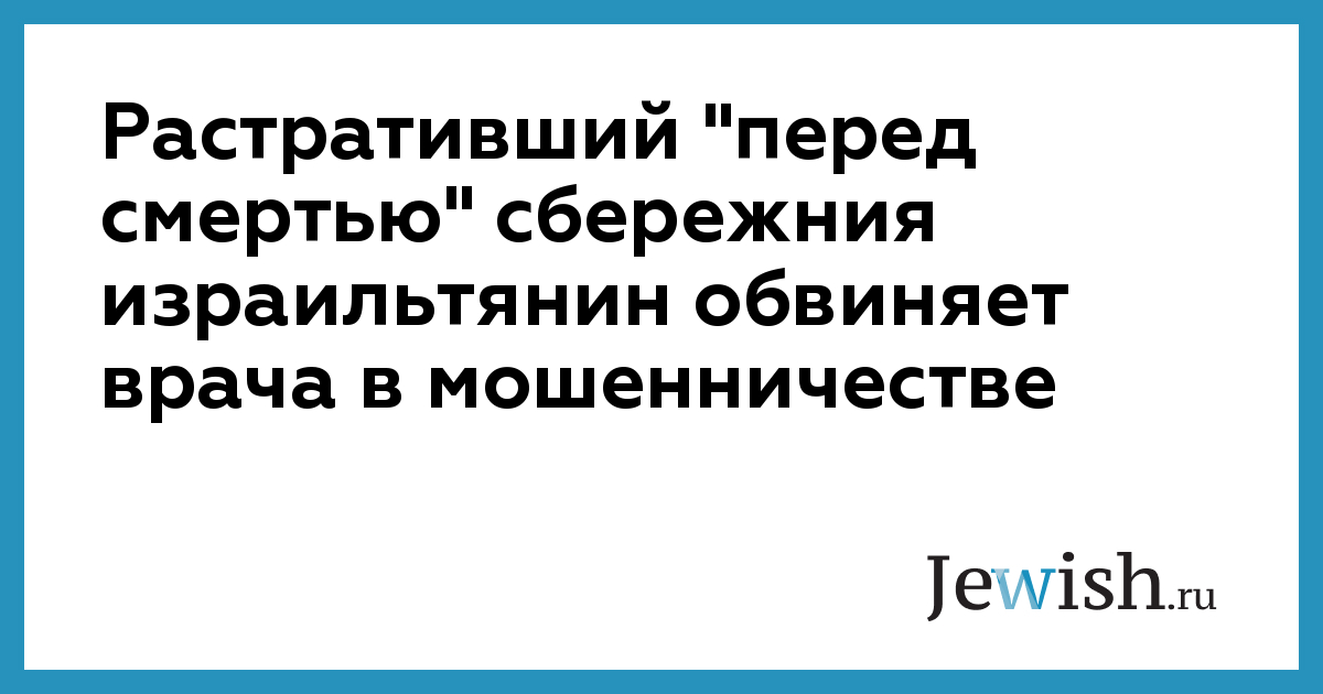 Растративший "перед смертью" сбережния израильтянин обвиняет врача в мошенничестве