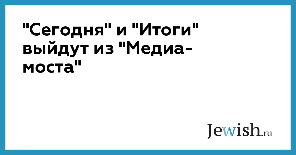 "Сегодня" и "Итоги" выйдут из "Медиа- моста"