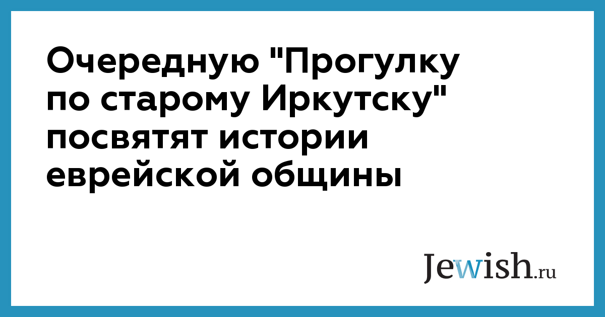 Очередную "Прогулку по старому Иркутску" посвятят истории еврейской общины
