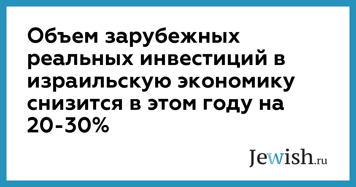 Объем зарубежных реальных инвестиций в израильскую экономику снизится в этом году на 20-30%
