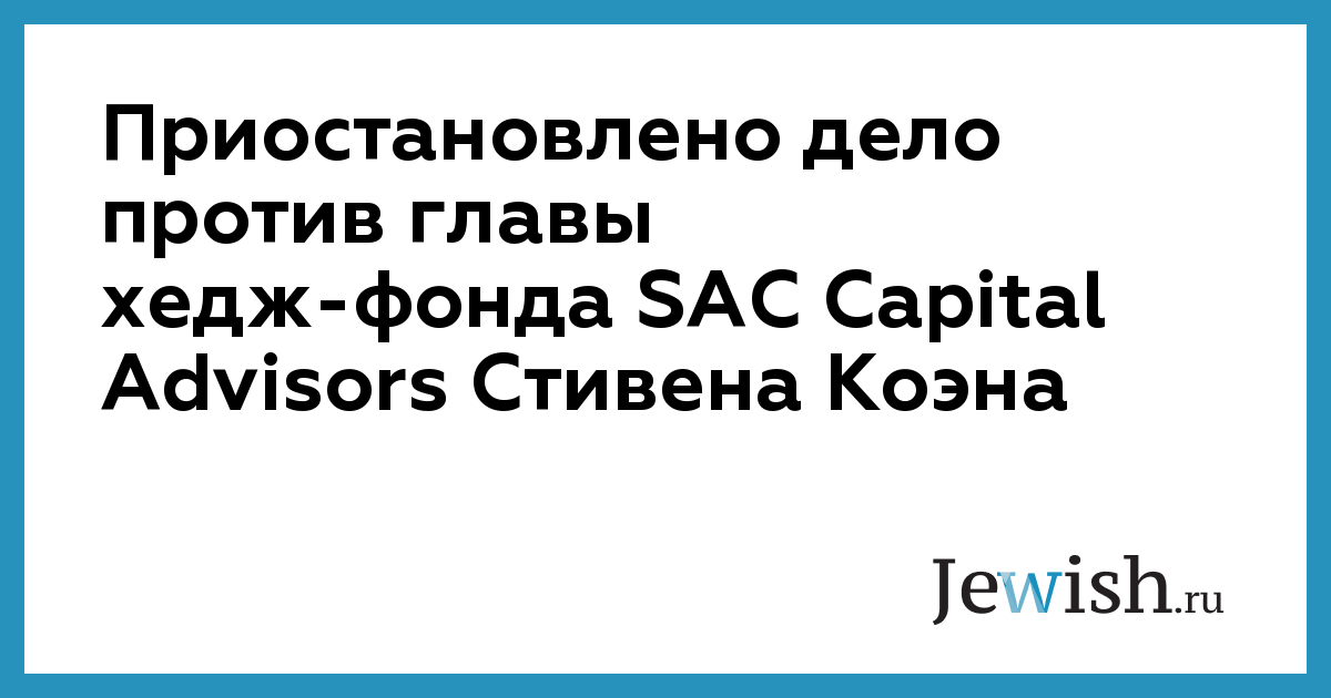 Приостановлено дело против главы хедж-фонда SAC Capital Advisors Стивена Коэна