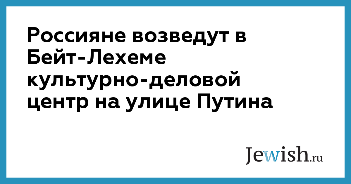 Россияне возведут в Бейт-Лехеме культурно-деловой центр на улице Путина