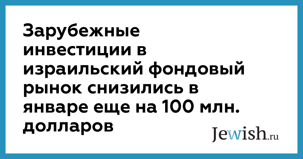 Зарубежные инвестиции в израильский фондовый рынок снизились в январе еще на 100 млн. долларов