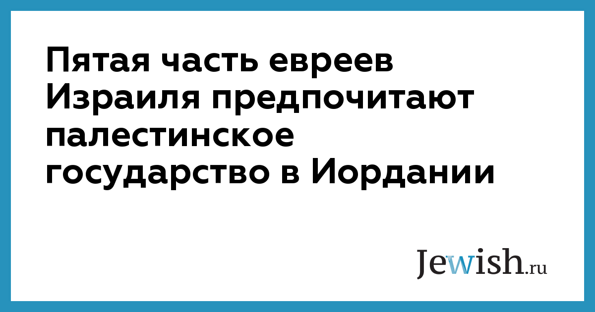 Около 19 процентов израильских евреев предпочитают видеть палестинское государство в Иордании, а не на Западном берегу, но только 7% действительно думают, что это может произойти. Таковы данные опроса "Маагар Мохот" по заказу организации "Профессора за сильный Израиль".