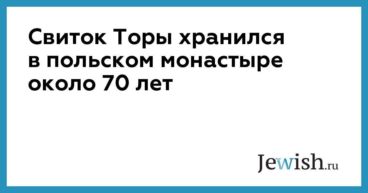 Свиток Торы хранился в польском монастыре около 70 лет