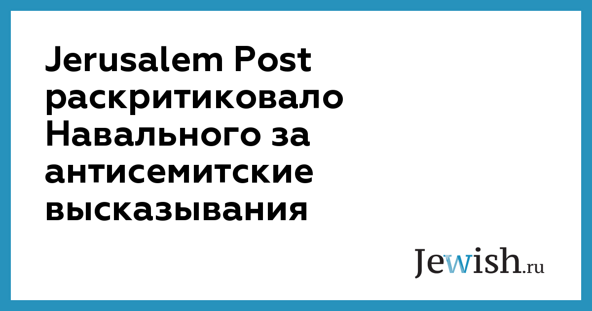 Израильское издание The Jerusalem Post раскритиковало блогера Алексея Навального за антисемитские и ксенофобские высказывания, которые он произнес на вечеринке по случаю годовщины журнала The New Times. Поводом для критики стал тост, произнесенный Навальным на вечеринке: "Первый тост за Холокост". Изданию также не понравились выпады Навального в адрес религиозных евреев и его замечание о том, что "тот, кто хочет жить в России, должен стать русским — в полном смысле этого слова".