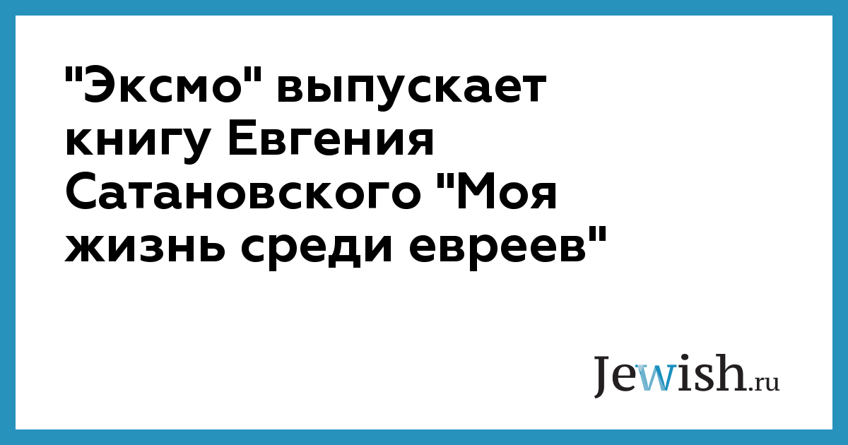 "Эксмо" выпускает книгу Евгения Сатановского "Моя жизнь среди евреев"