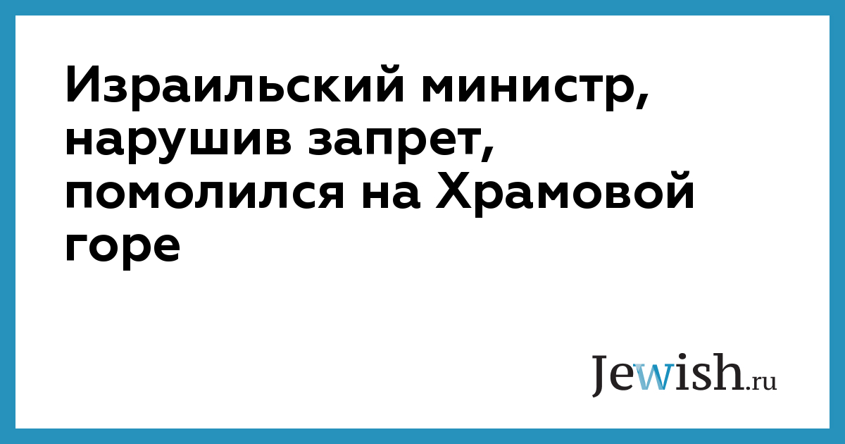 Как сообщает Десятый телеканал, министр, который находился под усиленной охраной полиции, использовал свое пребывание на горе, чтобы помолиться. Это стало грубым нарушением действующих правил, запрещающих евреям молиться в месте, которое считают святым и мусульмане.