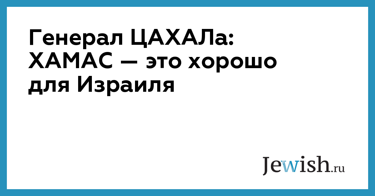 Генерал ЦАХАЛа: ХАМАС — это хорошо для Израиля
