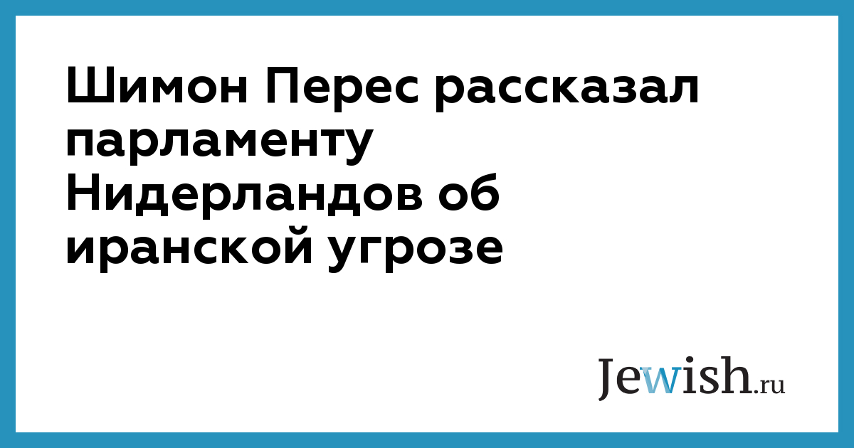 Шимон Перес рассказал парламенту Нидерландов об иранской угрозе