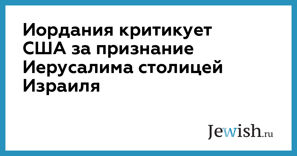 Иордания критикует США за признание Иерусалима столицей Израиля