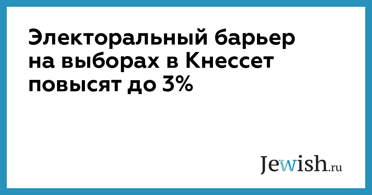 Электоральный барьер на выборах в Кнессет повысят до 3%