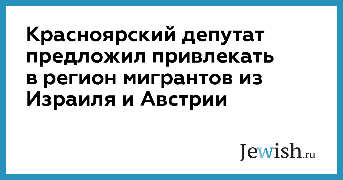Красноярский депутат предложил привлекать в регион мигрантов из Израиля и Австрии
