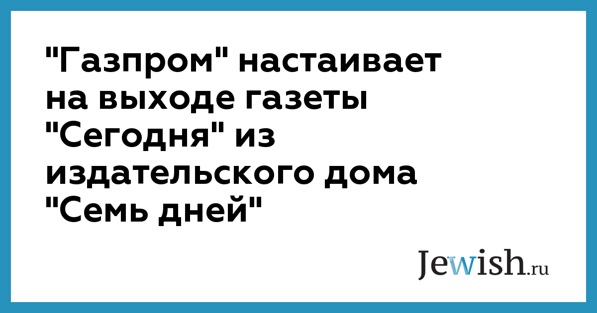 Как сообщил главный редактор газеты "Сегодня" Михаил Бергер, "Газпром", который совместно с другим акционером фактически контролирует издательство "Семь дней", выступил с таким требованием.